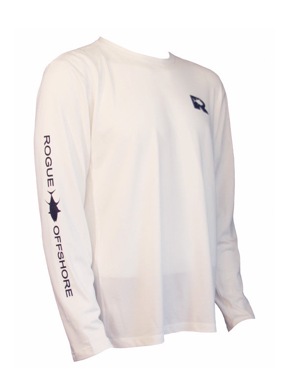 The Rogue Offshore Performance Tuna Logo shirts are made from the durable fabrics that provide 40+ UV protection, antimicrobial, moisture wicking capabilities, stain resistant, and a woven popcorn knit fabric that prevent against picking and snags of the material by hooks and fish.  One of the best performance shirts you will ever buy that will last all season.