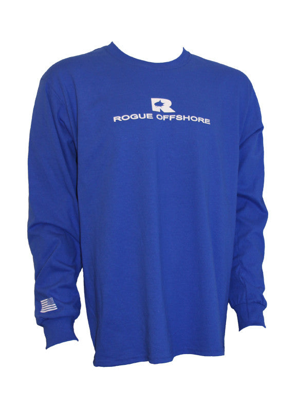 The Blue Marlin long sleeve t-shirt in ocean and white is a simple design with clean lines that includes a small American Flag on the base of right sleeve and looks great on the dock or on the street. This shirt is made with Gildan 100% ultra cotton, pre-shrunk for that classic comfortable everyday fit. Available in adult sizes.