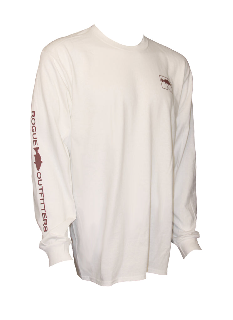 Rogue Redfish Logo LS T-Shirt - White/Crimson