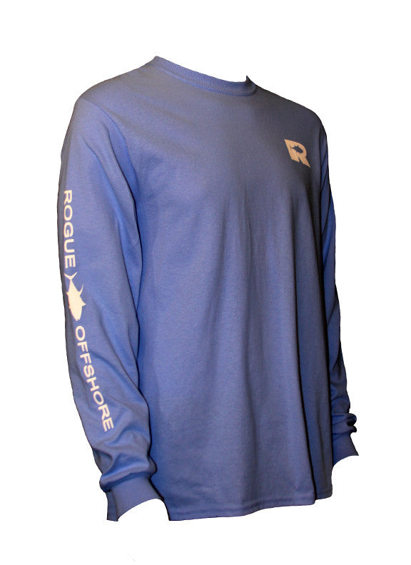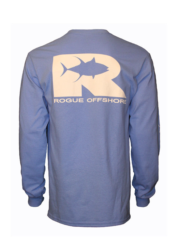 The classic Tuna Logo long sleeve shirt in Columbia Blue and White is a simple design with clean lines that looks great on the dock or on the street. This shirt is made with Gildan 100% ultra cotton, pre-shrunk for that classic comfortable everyday fit. Available in adult sizes.